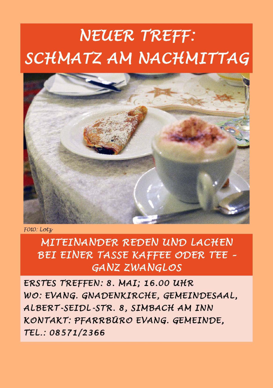 Am 8.5., 16.00 Uhr, trifft sich zum ersten Mal der "Schmatz am Nachmittag".